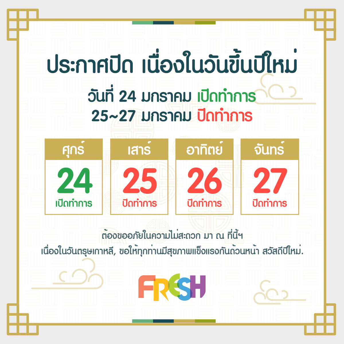 Updates and news ประกาศปิด เนื่องในวันขึ้นปีใหม่